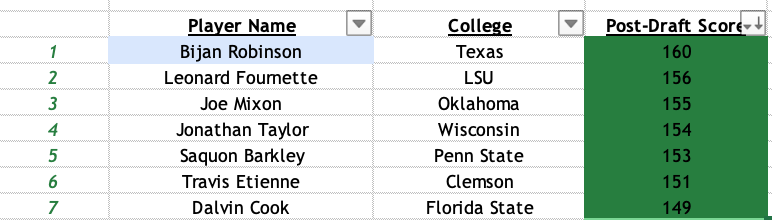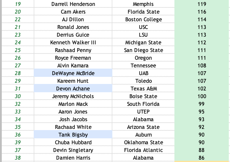 Since 2016, I have graded 7 RBs as 'Super-Nova' prospects (tier 1).